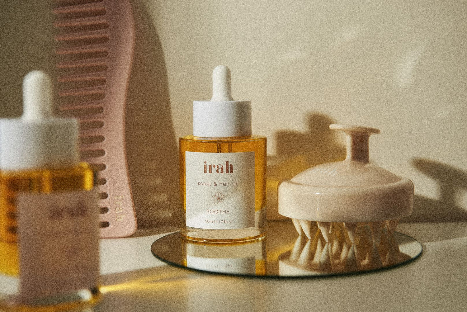 Have been using both the Flourish and Soothe oils in my  long hair, alternating between the two and have definitely noticed a difference in my hair and scalp, especially after swimming, now my hair is soft and the ends are not dry or damaged anymore.  I’m also loving the comb and scalp massager.  Also the packaging and presentation is just so lovely too .💛. Thank you irah hair